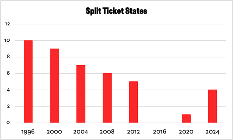 The numbers tell the story. In 2020, just one state—Maine—split its presidential and Senate results, supporting both Joe Biden and centrist Republican Sen. Susan Collins. In 2016, not a single state did. This year, voters in four states split their votes. This return to split-ticket voting suggests that, for many Americans, party loyalty and national politics took a backseat to candidates who reflected their values and spoke directly to their concerns about the economy, immigration, and cultural issues.
